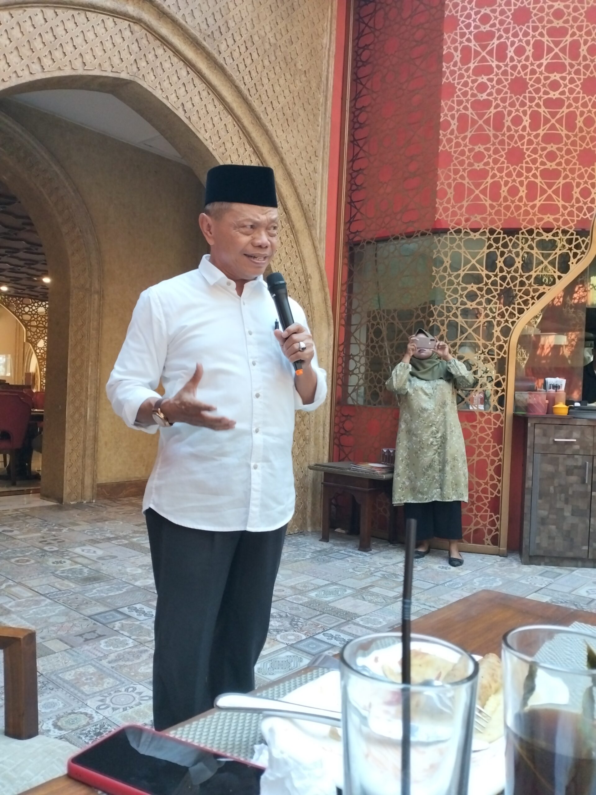 Misbahul Huda, Ketua ISMI Jatim saat memberikan sambutan di Restaurant Larazeta Surabaya, Jumat (26/5/2023). (foto: Muhammad Abdel Rafi/cakrawarta)