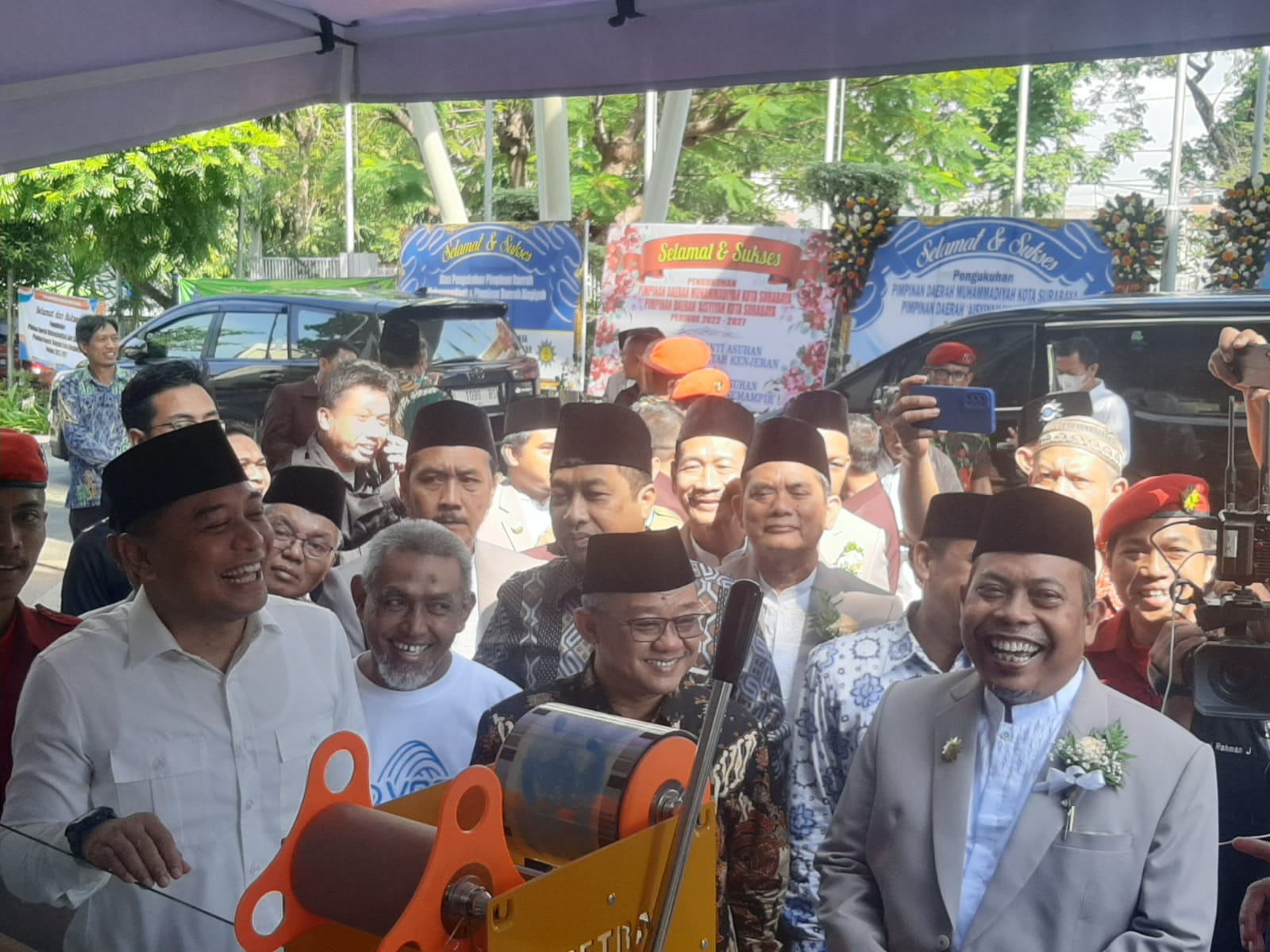 Pimpinan Pusat, Wilayah dan Daerah Muhammadiyah saat mendatangi stan TOYAAA bertempat di halaman Airlangga Convention Center Universitas Airlangga, Selasa (13/6/2023) siang. (foto: Rafel/CAKRAWARTA)