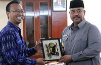 Momen ketika Wahyu Yulianto menerima cinderamata dari Bupati Kutai Kartanegara Edi Darmansyah pada 2019 lalu. (foto: istimewa)