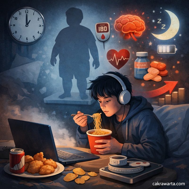 Menurut dia, kurang tidur dapat menyebabkan perubahan hormon yang membuat seseorang lebih mudah merasa lapar, khususnya pada malam hari. Kondisi ini kerap mendorong remaja untuk mengonsumsi camilan atau makanan berat menjelang tidur.