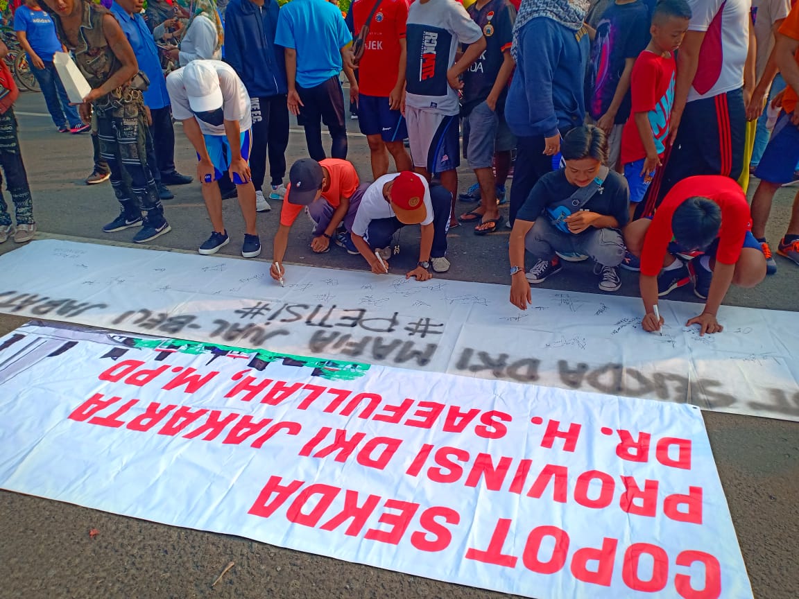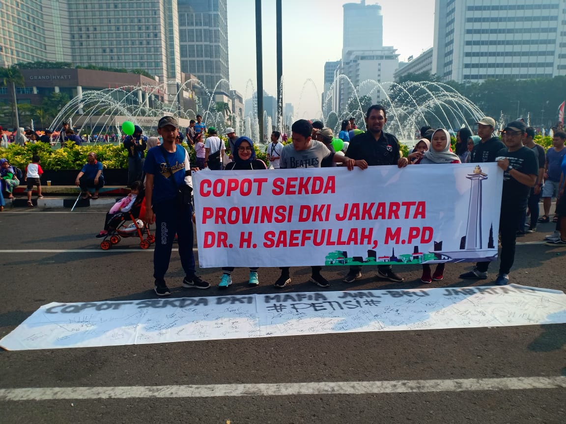 JAKARTA – Polemik jual-beli jabatan di lingkungan pemerintahan provinsi DKI Jakarta berujung panjang, pasalnya pada Minggu (14/7/2019) pagi, sekelompok pemuda dan mahasiswa mengumpulkan tanda tangan di Car Free Day, Bundaran Hotel Indonesia, Jakarta.