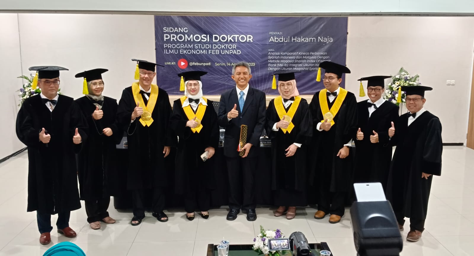 Gelar doktor itu diraih Abdul Hakam Naja melalui penelitian yang memperbandingkan bank Syariah di Indonesia dengan Malaysia, dalam disertasi berjudul “Analisis Komparatif Perbankan Syariah dan Malaysia dengan Metode Maqasid