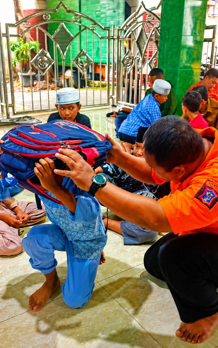 Peserta juga diberikan panduan praktis menghadapi situasi darurat, seperti langkah berlindung saat gempa dan pentingnya segera menuju titik kumpul melalui jalur evakuasi setelah kondisi dinyatakan aman.