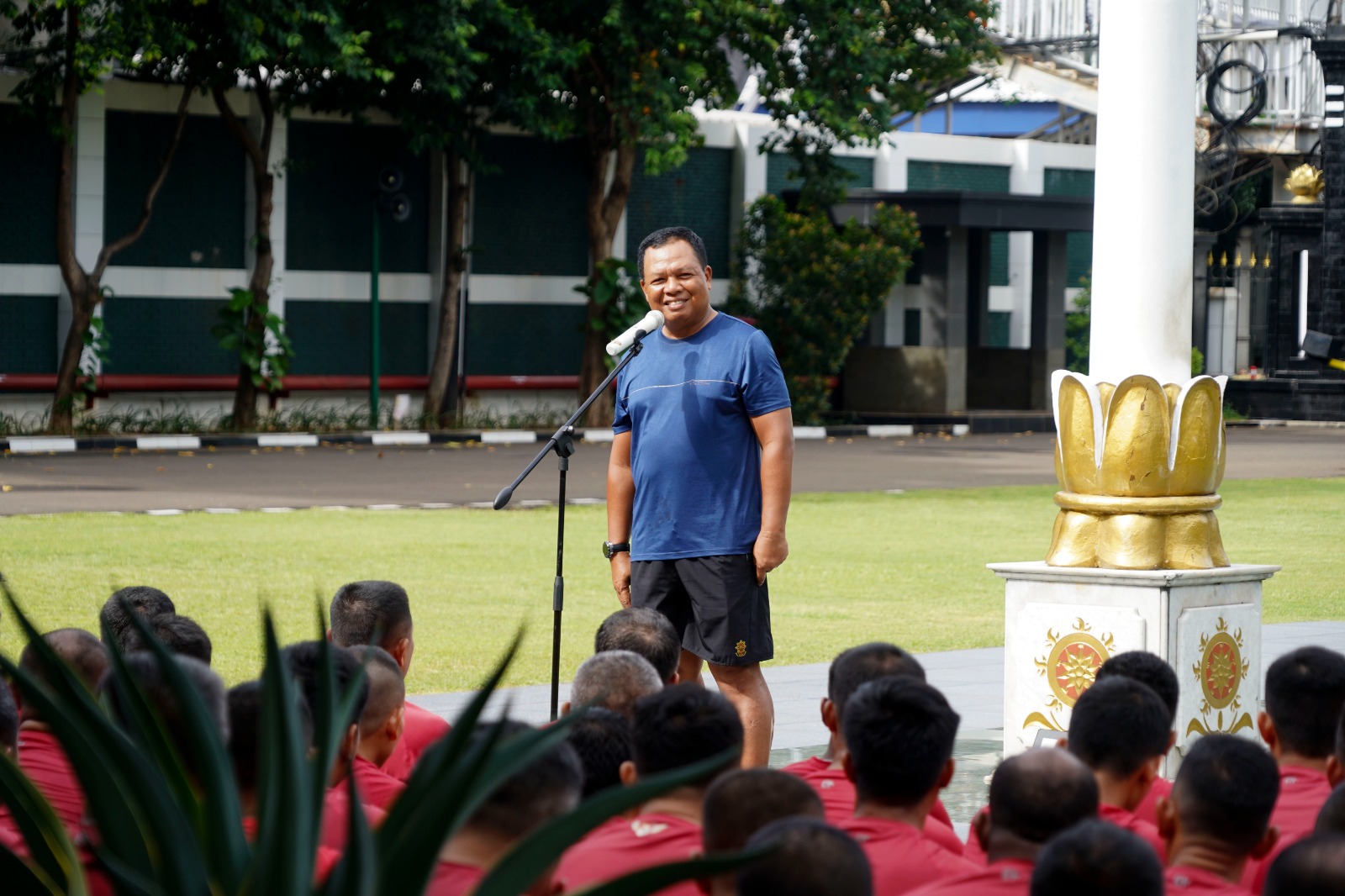JAKARTA – Kepala Staf Kostrad (Kaskostrad) Mayjen TNI Farid Makruf, M.A., memberikan pengarahan kepada seluruh Prajurit dan Pegawai Negeri Sipil Markas Kostrad, usai melaksanakan olahraga bersama di Lapangan Markas Kostrad, Gambir, Jakarta Pusat, pada hari Kamis (18/1/2024).
