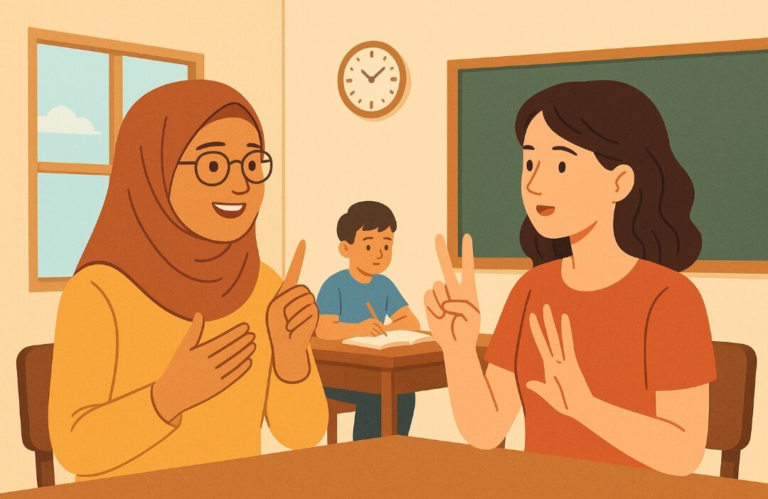 Menurut Mutia, pembelajaran bahasa isyarat menjadi bagian penting dari proses itu. Bahasa isyarat memungkinkan komunikasi dua arah antara siswa penyandang tuli dan lingkungan sekitarnya tanpa diskriminasi.
