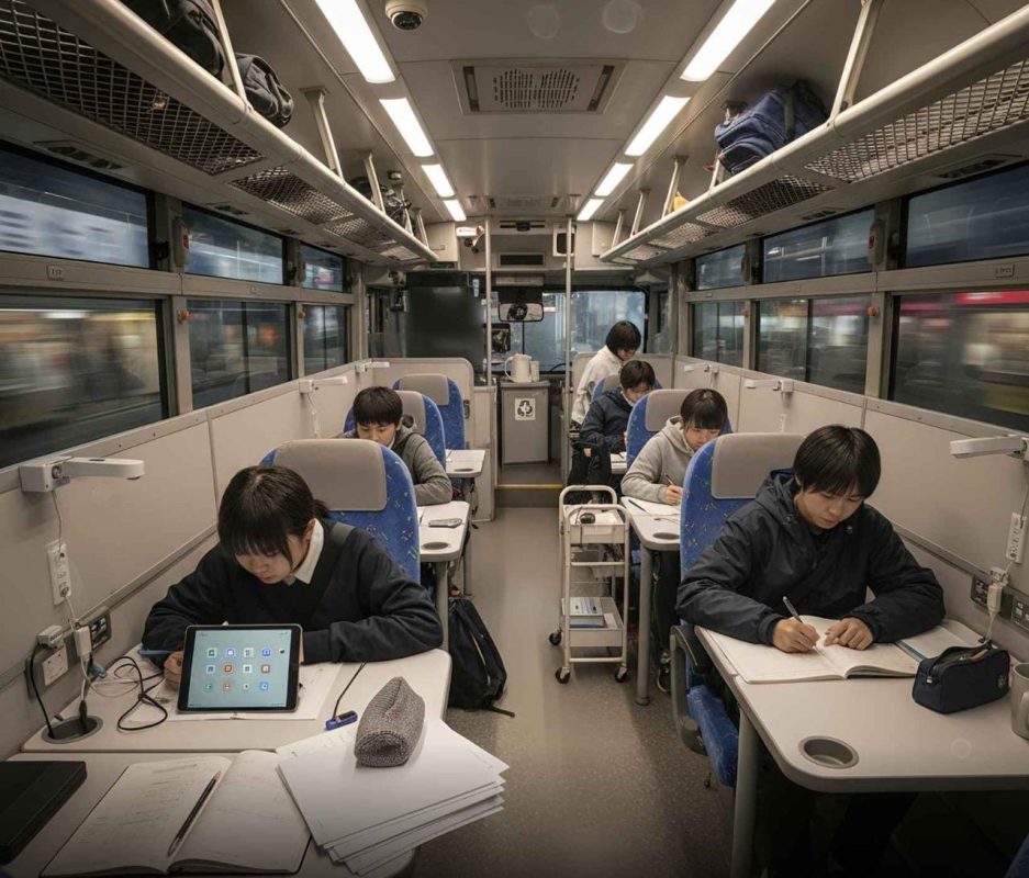 Ketika malam turun perlahan di Jepang dan jalanan mulai sepi, ada cahaya lembut yang tampak bergerak di antara gang-gang perumahan. Bukan lampu toko yang belum tutup, bukan pula kendaraan patroli. Cahaya itu datang dari sebuah bus yang di dalamnya, bukan penumpang biasa yang duduk, melainkan para remaja yang tekun belajar.