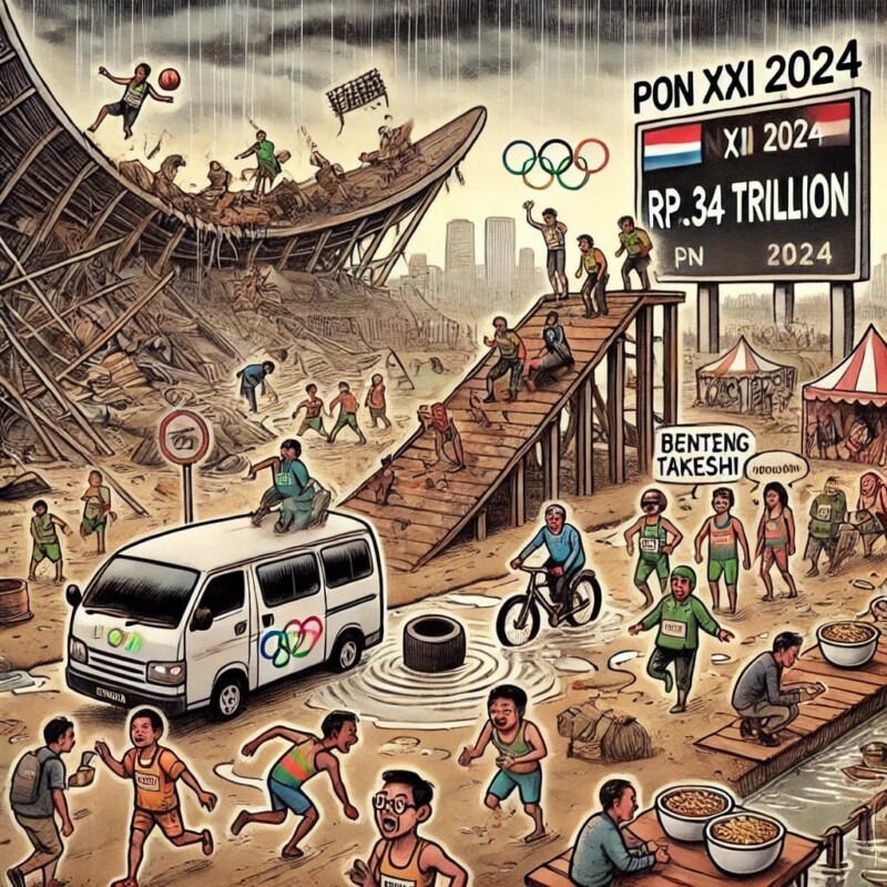 Sejak awal, PON XXI seolah dirancang untuk menguji kesabaran. Belum sempat kita bangga dengan persiapan matang seperti yang dijanjikan, atlet voli yang seharusnya fokus menjaga stamina malah harus meniti balok ala “Benteng Takeshi” menuju venue yang penuh lumpur.