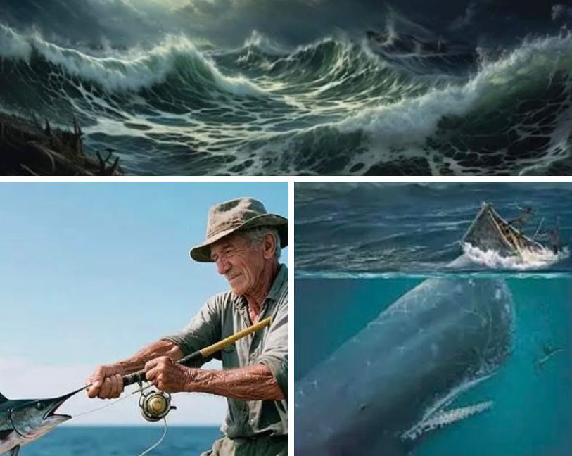 (foto: diambil dari Youtube yang membahas The Old Man & The Sea dan Moby Dick serta dibikin dalam bentuk mozaik)