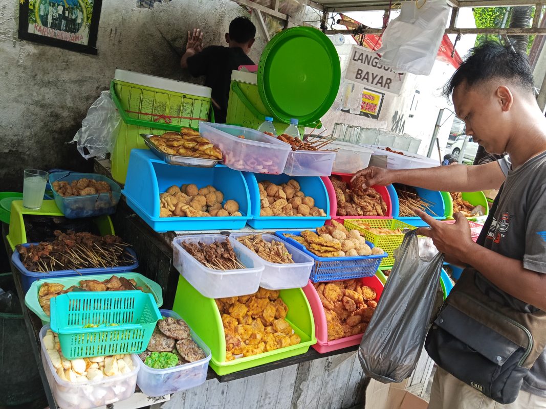 Tak hanya minuman, Es Legen Cakar Mas juga dikenal dengan deretan jajanan pendamping yang nyaris lengkap. Aneka gorengan, sate-satean, hingga nasi bungkus seharga Rp 7.000 tersaji rapi dan siap diambil sendiri oleh pengunjung. Mayoritas jajanan dibanderol Rp 1.000-an, sementara nasi bungkus dijual dengan harga terjangkau.
