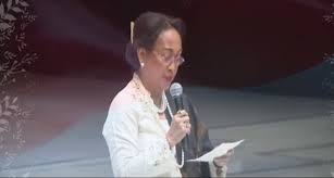 Sukmawati Soekarnoputri saat membacakan puisi berjudul “Ibu Indonesia” pada  acara “29 Tahun Anne Avantie Berkarya” di Indonesia Fashion Week 2018 yang diselenggarakan di JCC, Jakarta, pada Kamis (29/3/2018)