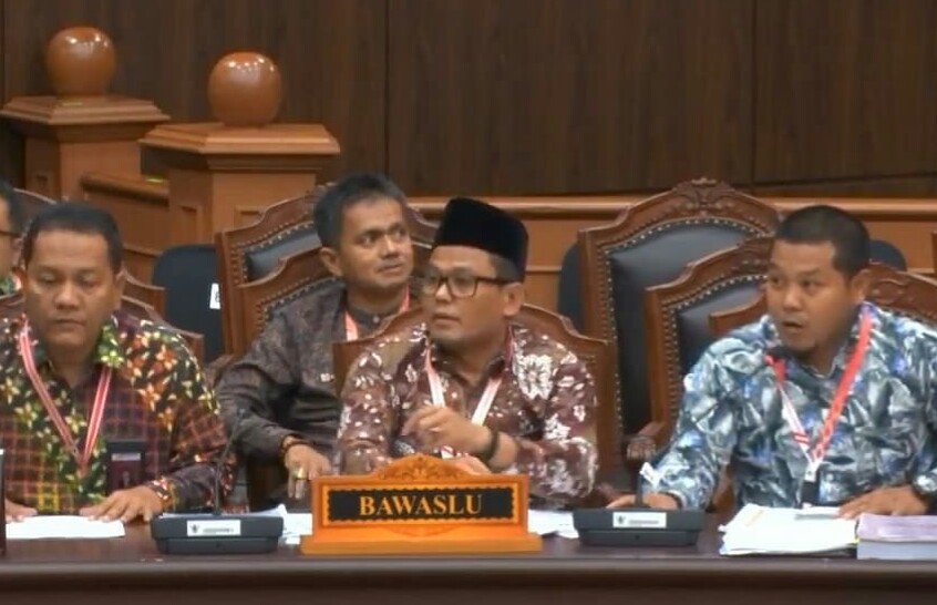 JAKARTA – Badan Pengawas Pemilihan Umum (Bawaslu) Provinsi Riau didampingi Bawaslu Kabupaten Bengkalis, Siak dan Inhil memberikan keterangan terkait sengketa Perselisihan Hasil Pemilihan Uumum (PHPU) yang di mohonkan oleh Partai Nasional Demokrat (Nasdem) dan PDI Perjuangan. Permohonan Nasdem dan PDI Perjuangan dilanjutkan ke pemeriksaan saksi oleh Majelis Hakim MK di Daerah Pemilihan (Dapil) 3, 4 dan 5 Bengkalis, Dapil 4 Kabupaten Siak dan Dapil 4 Kabupaten Indragiri Hilir (Inhil).