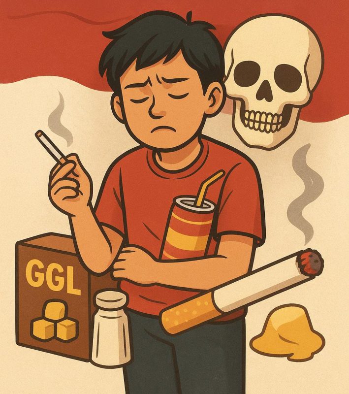 Ia menambahkan, PP Nomor 28 Tahun 2024 tentang Kesehatan sebenarnya sudah memberi landasan kuat untuk pengendalian konsumsi GGL dan rokok. Regulasi itu memandatkan pelabelan peringatan kesehatan bergambar, pembatasan iklan rokok di media digital, pelarangan penjualan ketengan, serta penerapan traffic light food labeling. Namun, pelaksanaannya hingga kini mandek.