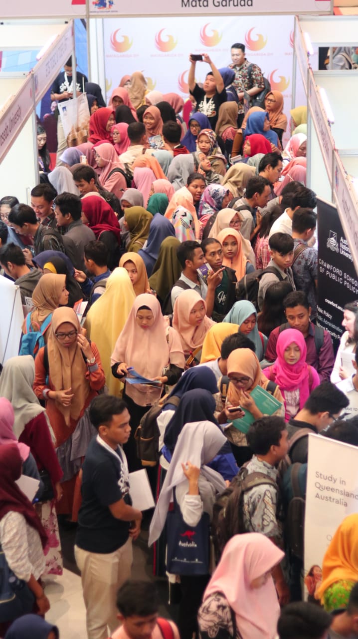 Peserta Pameran “Indonesia Scholarship Festival 2019” yang diselenggarakan di Gedung Airlanggonvention Center (ACC) Universitas Airlangga, Surabaya, Jumat (8/2/2019) sangat membeludak.