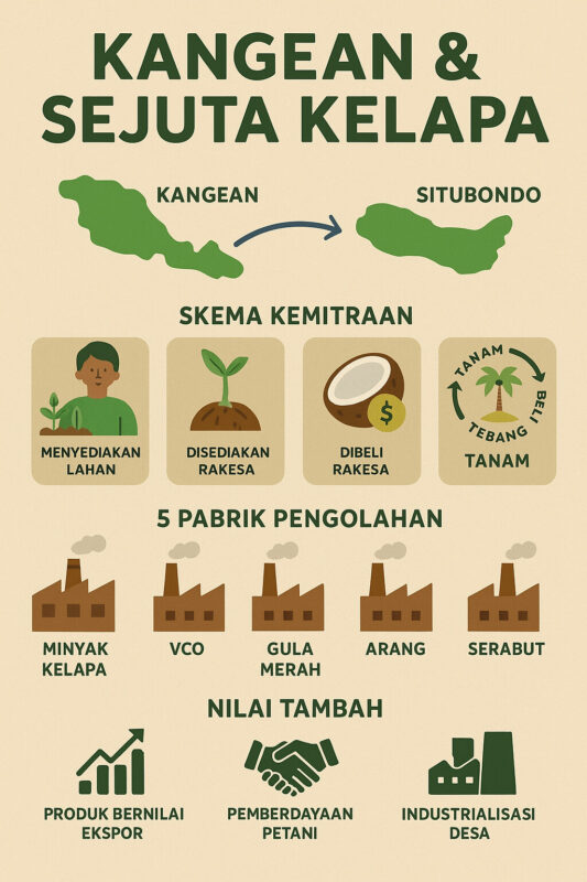 Kalau benar-benar berjalan, program ini bisa jadi cerita sukses dari Kangean: dari sejuta kelapa, lahir sejuta harapan.