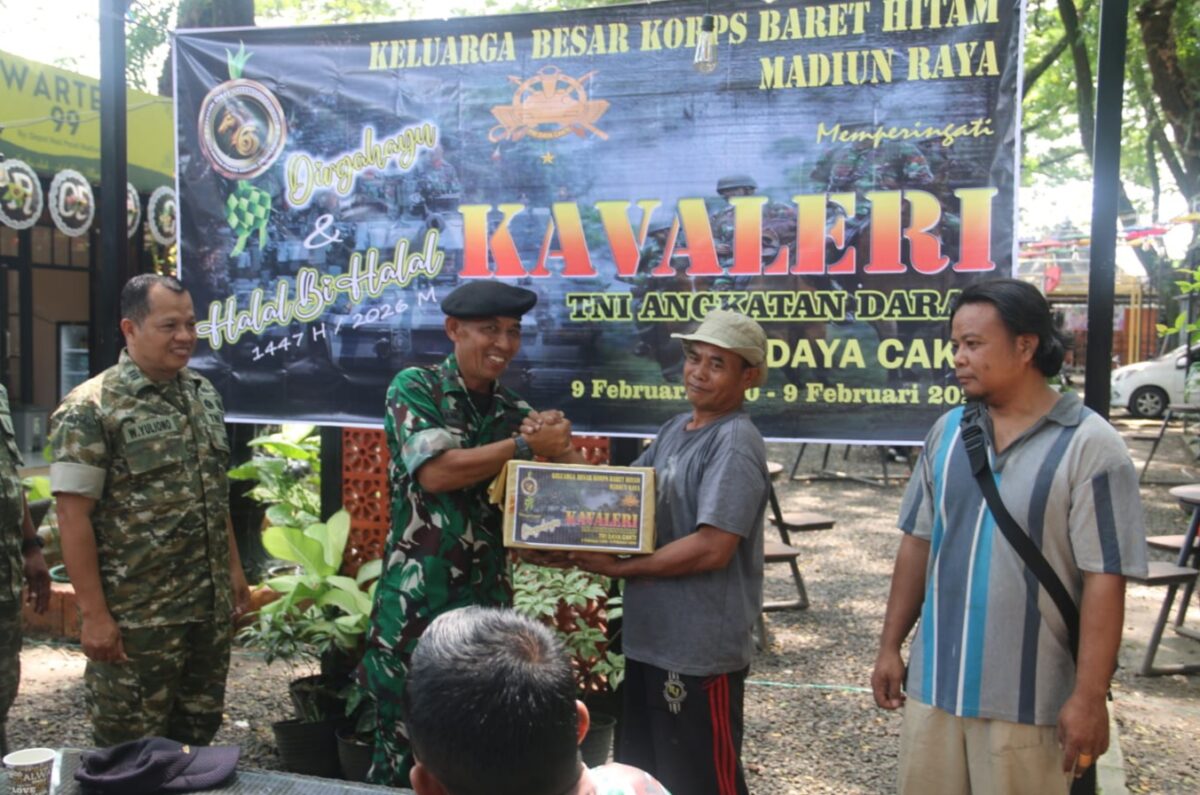 MADIUN, CAKRAWARTA.com – Prajurit Korps Kavaleri TNI Angkatan Darat di wilayah Madiun Raya menunjukkan soliditas dan kepedulian sosial melalui kegiatan bakti sosial bagi warga kurang mampu. Kegiatan ini digelar dalam rangka peringatan HUT ke-76 Kavaleri TNI AD yang dirangkaikan dengan halal bihalal di Ngrowo Bening Edu Park, Kota Madiun, Rabu (15/4/2026).