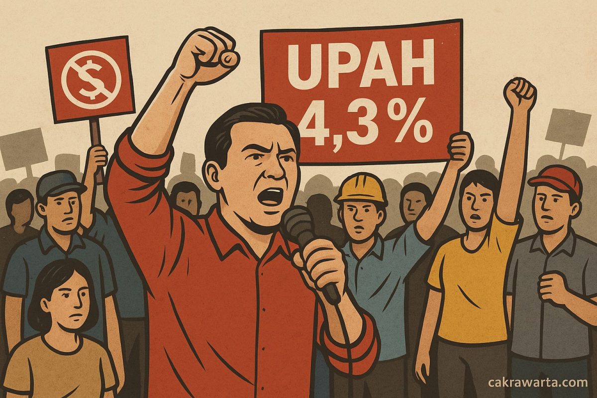 JAKARTA, CAKRAWARTA.com – Konfederasi Serikat Pekerja Indonesia (KSPI) dan Partai Buruh menyatakan penolakan keras terhadap Rancangan Peraturan Pemerintah (RPP) tentang Pengupahan yang tengah disiapkan pemerintah sebagai dasar penetapan upah minimum tahun 2026. RPP tersebut menetapkan formula kenaikan upah dengan inflasi dan pertumbuhan ekonomi yang dikalikan alpha. Dengan nilai alpha 0,3 sebagaimana rancangan pemerintah, kenaikan upah minimum hanya berkisar 4,3%.