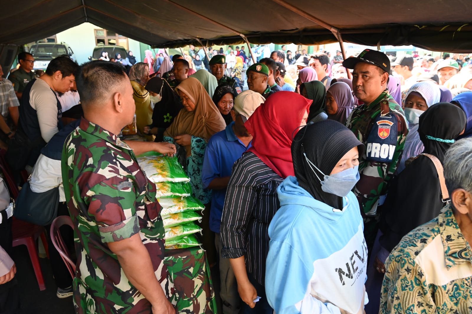 Sukoharjo, – Dandim 0726/Sukoharjo Letkol Czi Slamet Riyadi S.E., meninjau langsung pelaksanaan kegiatan Pasar Murah Serentak Kodam IV/Diponegoro bertempat di halaman Makodim 0726/Sukoharjo, pada Selasa (5/3/2024).