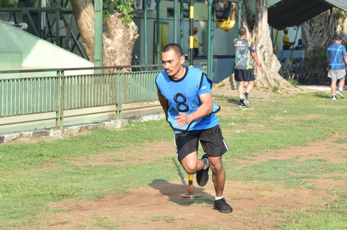 Pada materi Samapta A lari 12 menit, Heru bahkan tampak melesat sendirian di depan meninggalkan lainnya.