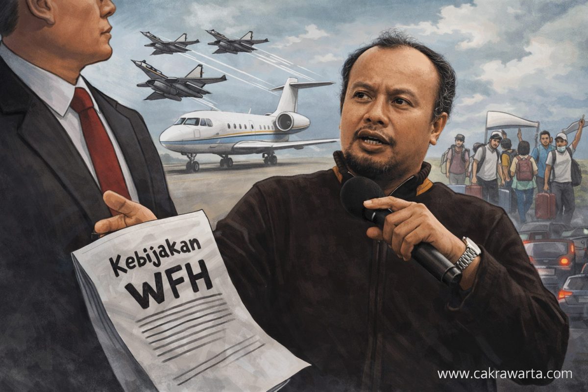 JAKARTA, CAKRAWARTA.com – Kebijakan work from home (WfH) yang diterapkan pemerintah menuai kritik tajam. Alih-alih dinilai sebagai langkah strategis untuk efisiensi energi, kebijakan tersebut justru dianggap berpotensi tidak efektif jika tidak disertai keteladanan dan konsistensi dari para pejabat publik.