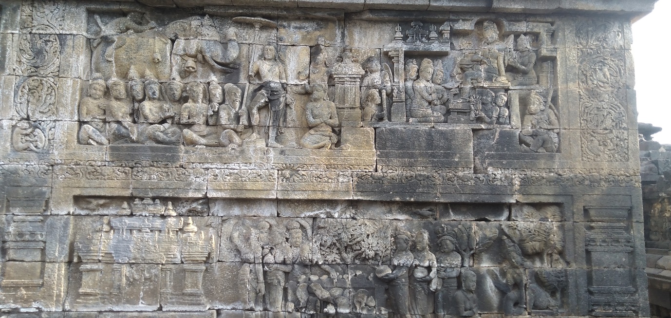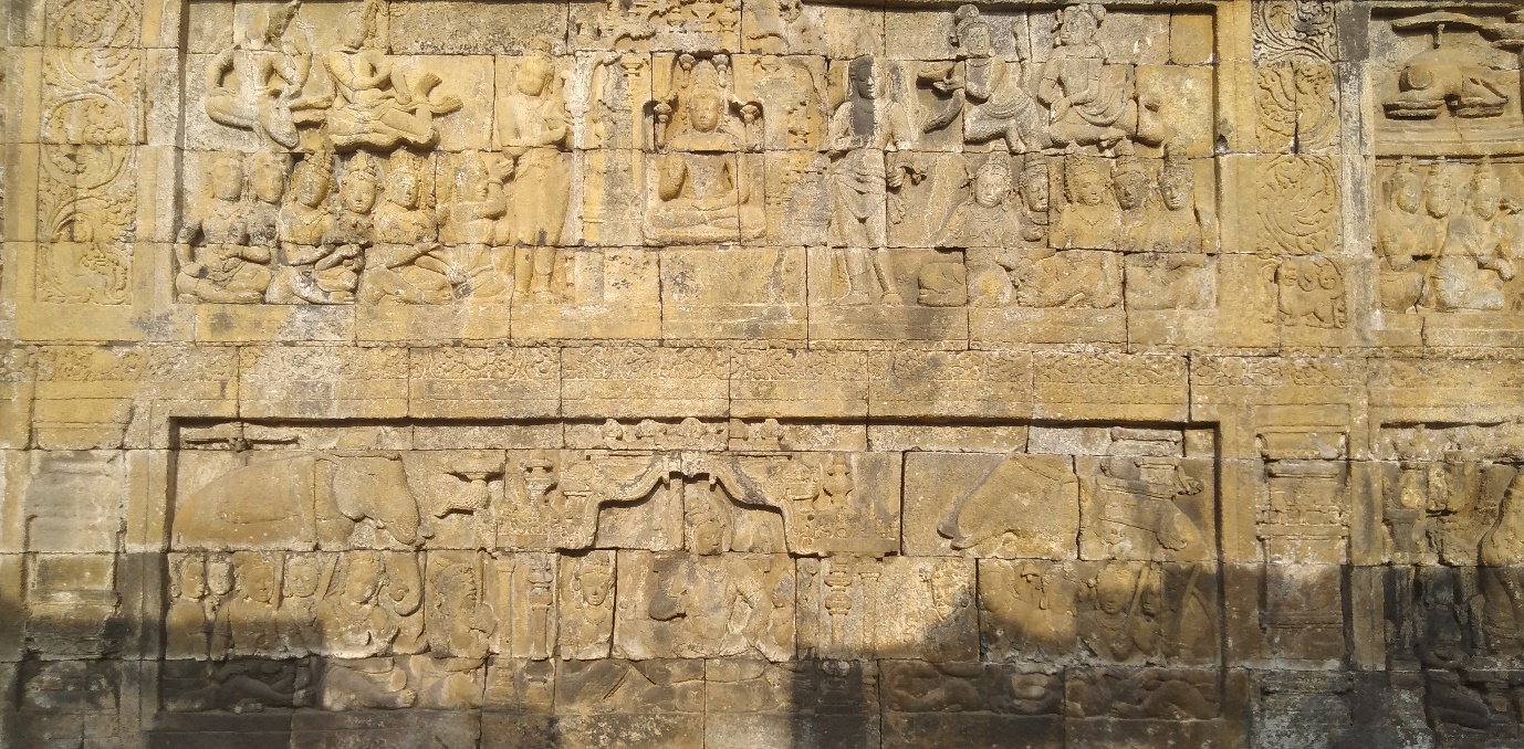 Penulis menemukan bahwa lantai rupadatu pada Candi Borobudur berkisah mengenai Sejarah Nusantara, sebagiannya berkaitan dengan dunia. Lantai rupadatu lantai paling atas (lantai 1) hingga lantai ketiga berkisah mengenai Sang Buddha, sejarah leluhur tanah Jawa (Nusantara) hingga berdirinya Candi Borobudur, dan peristiwa dunia yang terjadi saat itu (termasuk peristiwa burung ababil dan kelahiran Nabi Muhammad saw). Sedangkan lantai rupadatu keempat (rupadatu paling bawah) berkisah para raja-raja setelah dibangunnya Candi Borobudur, atau kisah masa depan setelah dibangunnya Candi Borobudur hingga memasuki zaman kehancuran menjelang kiamat (berakhirnya dunia) dengan didahului masa kebinatangan manusia (kamadatu). Kita saat ini berada di rupadatu lantai 4 relief nomor 64, dihitung dari sudut barat laut. Pada ulasan ini, penulis membatasi hanya mengulas relief 64, 65, 66, dan 67 terkait kode Borobudur berkaitan dengan Pemilu 2024 dan apa yang mungkin akan terjadi dalam lima tahun masa kepemimpinan (2024-2029).