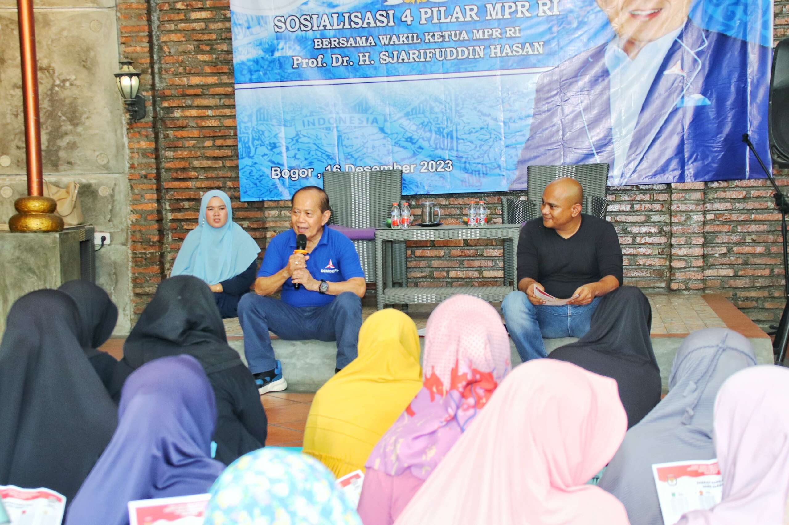 Wakil Ketua MPR Sjarifuddin Hasan saat bertemu konstituennya saat kunjungan kerjanya ke Kota Bogor, Sabtu (16/12/2023). (foto: ist)