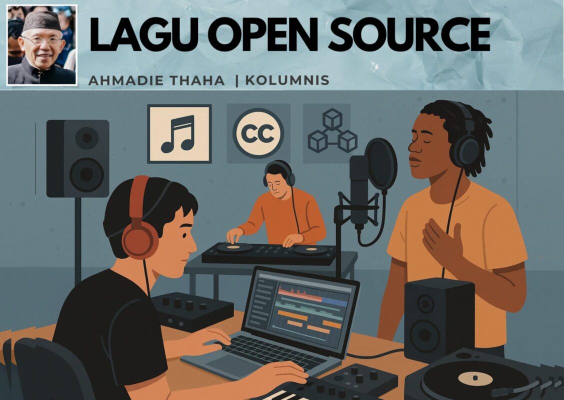 Ketiga, sistem distribusi. Karena bosan dengan birokrasi LMK, mereka pakai GitHub atau platform serupa untuk lagu. Jadi bukan hanya kode yang bisa di-fork, lagu pun bisa di-remix. Anak kampus di Surabaya bisa bikin versi dangdut, sementara santri di Jombang bikin versi shalawat.