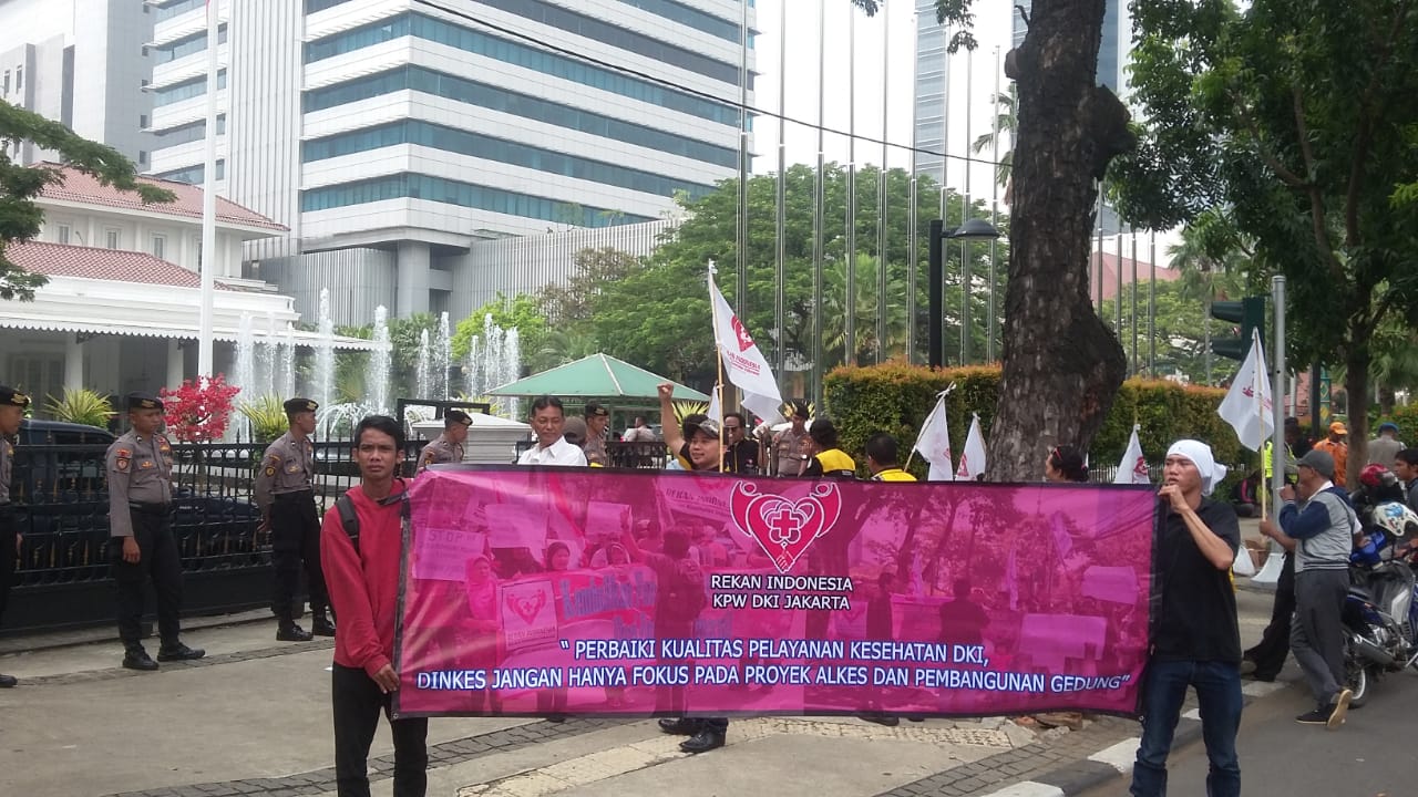 JAKARTA – Hari ini, Rabu (21/11/2018) Relawan Kesehatan (Rekan) Indonesia melakukan unjuk rasa di depan gerbang balaikota DKI Jakarta menuntut perbaikan layanan kesehatan di DKI Jakarta.