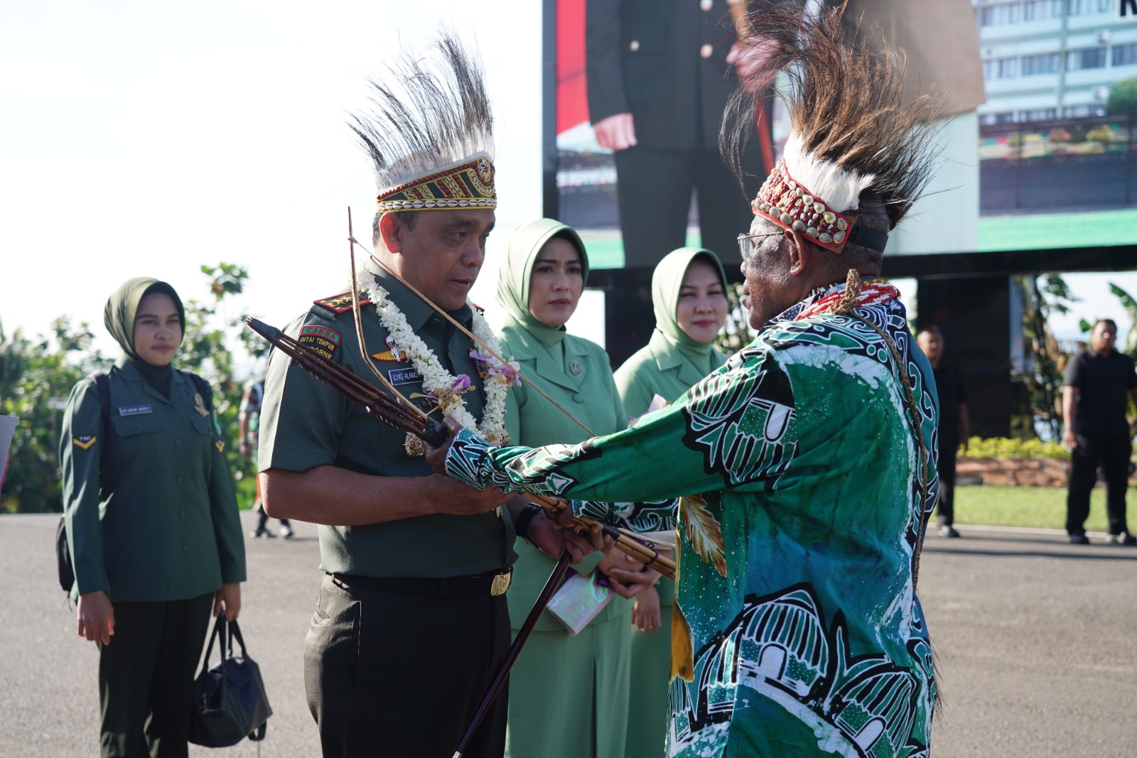Dalam arahannya, Pangdam menyampaikan di tempat yang terhormat ini, dengan rasa syukur dan suka cita, menerima segala isi, perlengkapan sekaligus tugas yang berada di tanggung jawab Kodam XVIII/Kasuari.