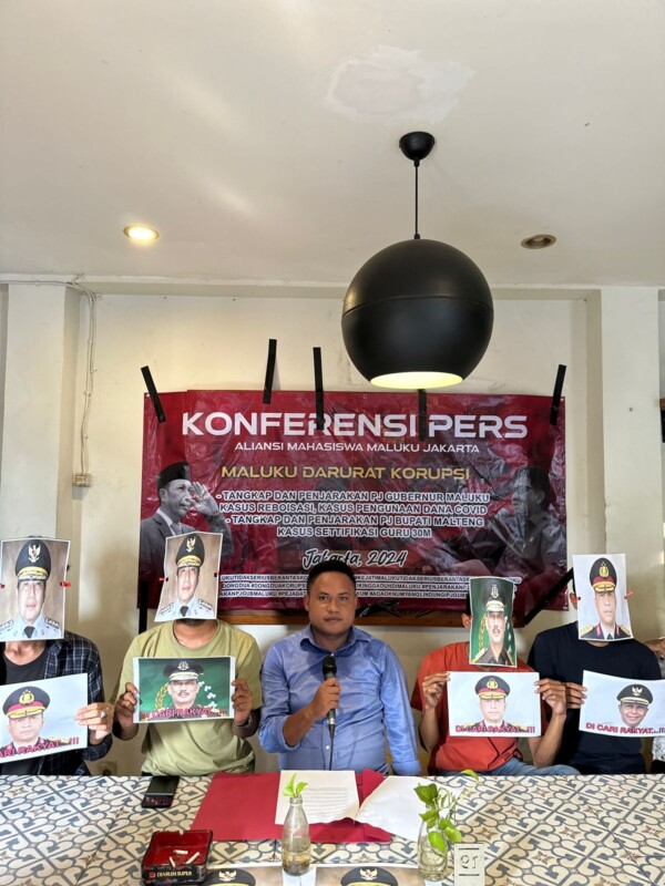 Jakarta,– Aliansi Mahasiswa Maluku Jakarta (AMMJ) menggelar konferensi pers terkait kasus dugaan korupsi yang melibatkan pejabat tinggi di kabupaten Maluku Tengah dan Propinsi Maluku, di Jakarta, pada Rabu (19/6/2024).