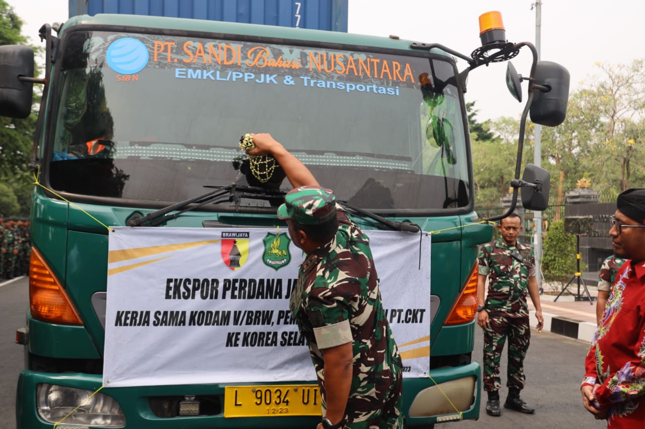 Demikian disampaikan Pangdam V/Brawijaya Mayjen TNI Farid Makruf pada pemberangkatan ekspor perdana jagung silase ke Korea Selatan yang dilakukan di Lapangan Ahmad Yani Makodam V/Brawijaya, Surabaya, hari ini, Jumat (17/11/2023).