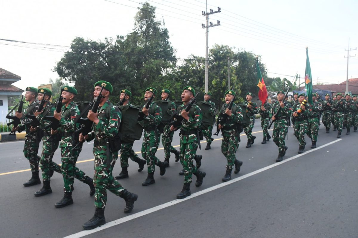 MOJOKERTO, CAKRAWARTA.com – Komandan Korem 081/Dhirotsaha Jaya Kolonel Arm Untoro Hariyanto mengiringi Peleton Yudha Wastu Pramuka yang bergerak dari Lapangan Desa Miagan, Kabupaten Jombang, menuju Lapangan Trowulan, Kabupaten Mojokerto, Jumat (19/12/2025). Kegiatan ini menjadi bagian dari napak tilas sejarah dalam rangka peringatan Hari Juang Infanteri ke-77.