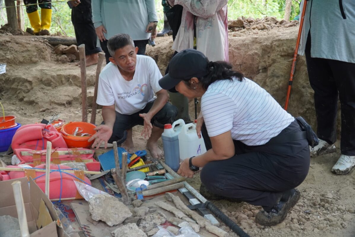 Sesampainya di lokasi, Ny. Uli berdialog dengan tim ekskavasi dari Museum Geologi Bandung, yang bekerja sama dengan Disporabudpar Nganjuk serta komunitas Kota Sejuk Nganjuk. Ia menyampaikan apresiasi mendalam atas kerja keras tim dalam menjaga warisan bumi yang sarat nilai sejarah tersebut.