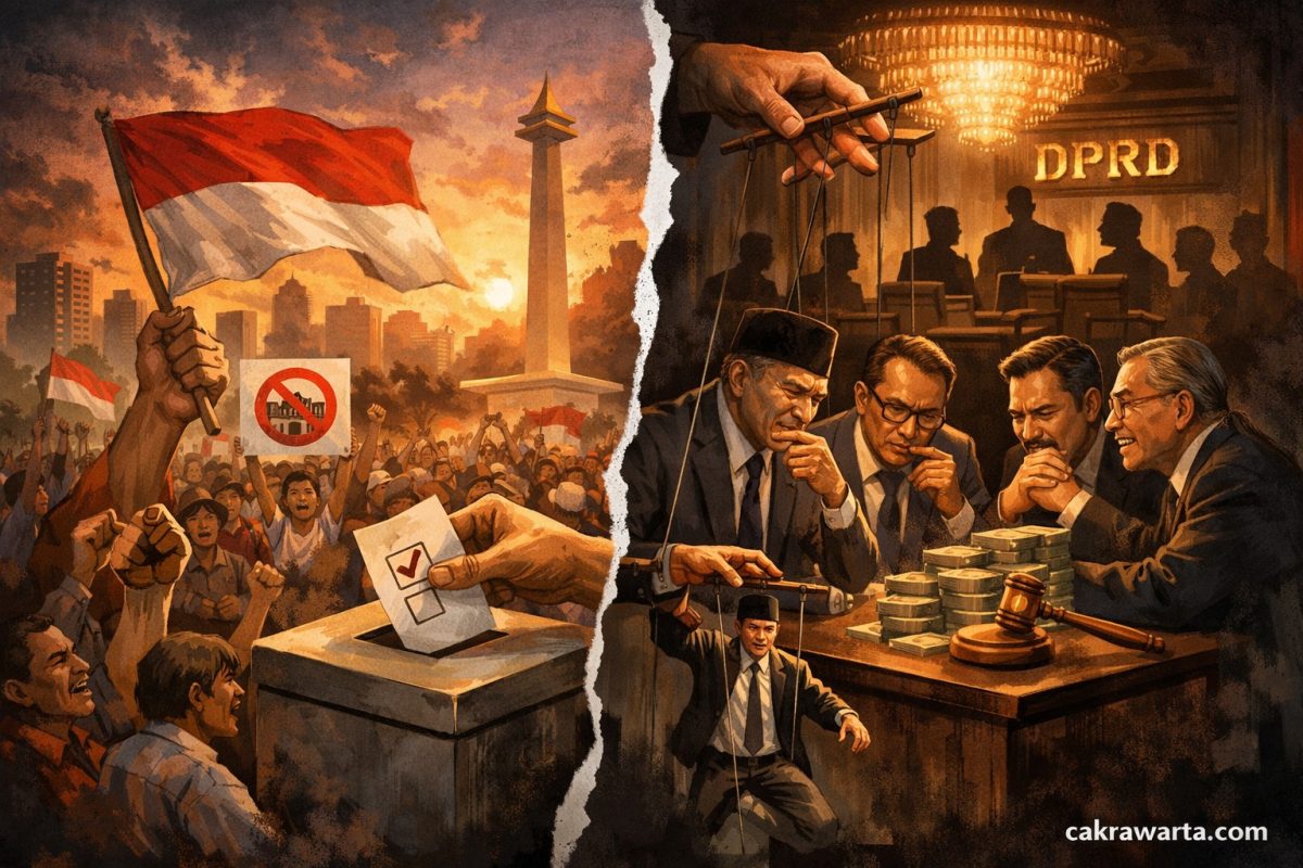 Ketika rakyat menolak Pilkada oleh DPRD, tetapi elite justru merestuinya, kita sedang menyaksikan paradoks demokrasi: prosedur yang sah tetapi kehilangan jiwa serta etikabilitas dan moral publik.