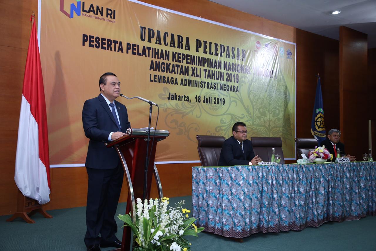 “Inilah prototipe awal bagi terbangunnya fondasi pemerintahan yang dinamis, flesibel, adaptif dan responsif dalam menghadirkan solusi untuk setiap permasalahan bangsa,” ujar Menteri Syafruddin dalam upacara pelepasan PKN Tingkat I angkatan ke 41 di Kantor LAN, Jakarta, Kamis (18/7/2019).