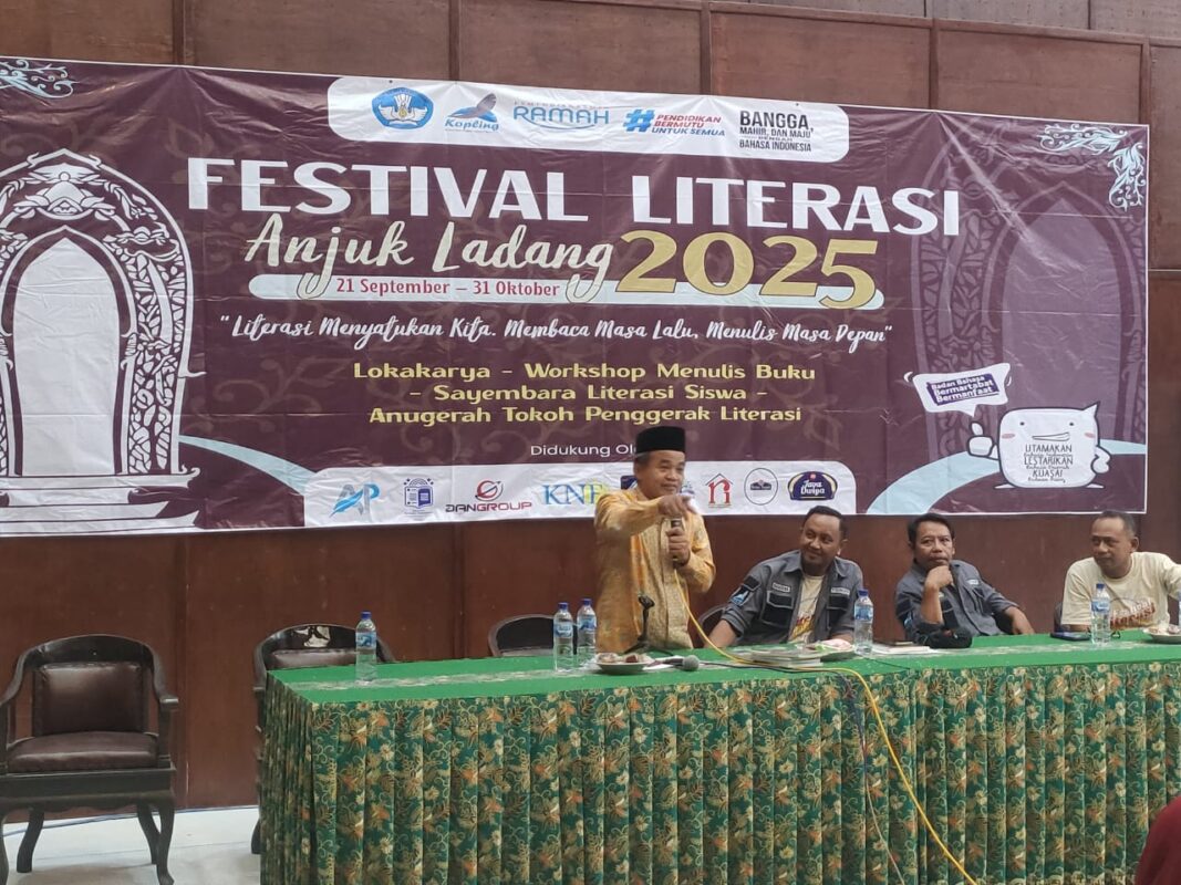 Pesan sederhana itu menjadi penanda betapa kuat semangat literasi yang hidup dalam Workshop Menulis Buku, agenda utama Festival Literasi Anjuk Ladang 2025 yang digelar Komunitas Pegiat Literasi Nganjuk (Kopling) bekerja sama dengan Badan Bahasa Kemendikbud RI.