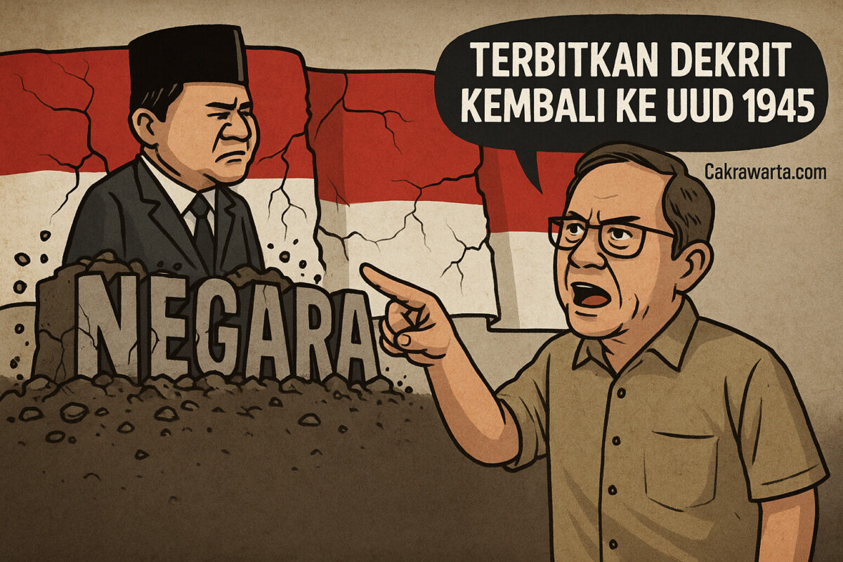 JAKARTA, CAKRAWARTA.com – Suara peringatan keras datang dari Ketua Pendiri Rumah Pancasila, Sutoyo Abadi. Ia mendesak Presiden Prabowo Subianto untuk segera mengambil langkah tegas dan menyelamatkan republik ini dari kehancuran. Caranya: terbitkan Dekrit Presiden untuk kembali ke UUD 1945 yang asli!