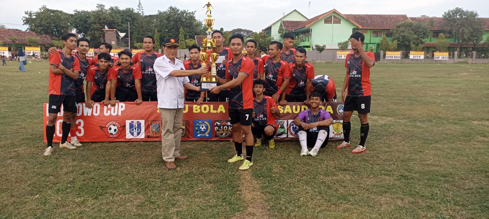 PONOROGO – Tim Lokal Ngawi FC menang 2-0 atas Pogres FC Pacitan pada laga final Prabowo Cup 2023 Piala Prabowo Subianto di Gelora Putra Jaya, Josari, Jetis, Ponorogo, Jatim, Sabtu (10/6/2023). Kemenangan tersebut memastikan Lokal Ngawi FC sebagai juara pertama Piala Prabowo Subianto 2023.