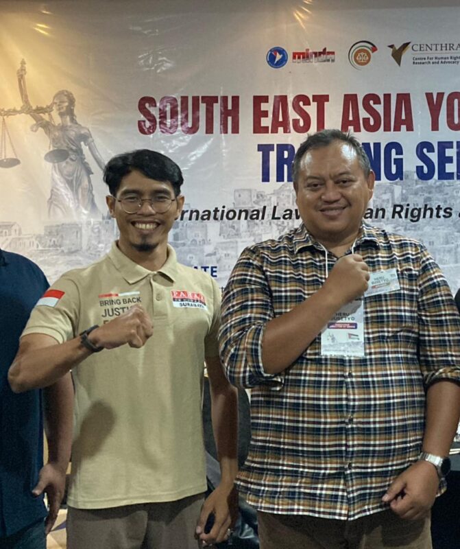 JAKARTA, CAKRAWARTA.com – Pusat Advokasi Hukum dan Hak Asasi Manusia (PAHAM) Indonesia Cabang Surabaya menyerukan agar Perserikatan Bangsa-Bangsa (PBB) segera mendeklarasikan kemerdekaan penuh bagi Palestina. Seruan itu disampaikan dalam forum South East Asia Young Lawyer Training 2025 yang digelar oleh Mission of Indonesia for Global Peace (MINDA) di Jakarta, pada hari Jumat (10/10/2025).