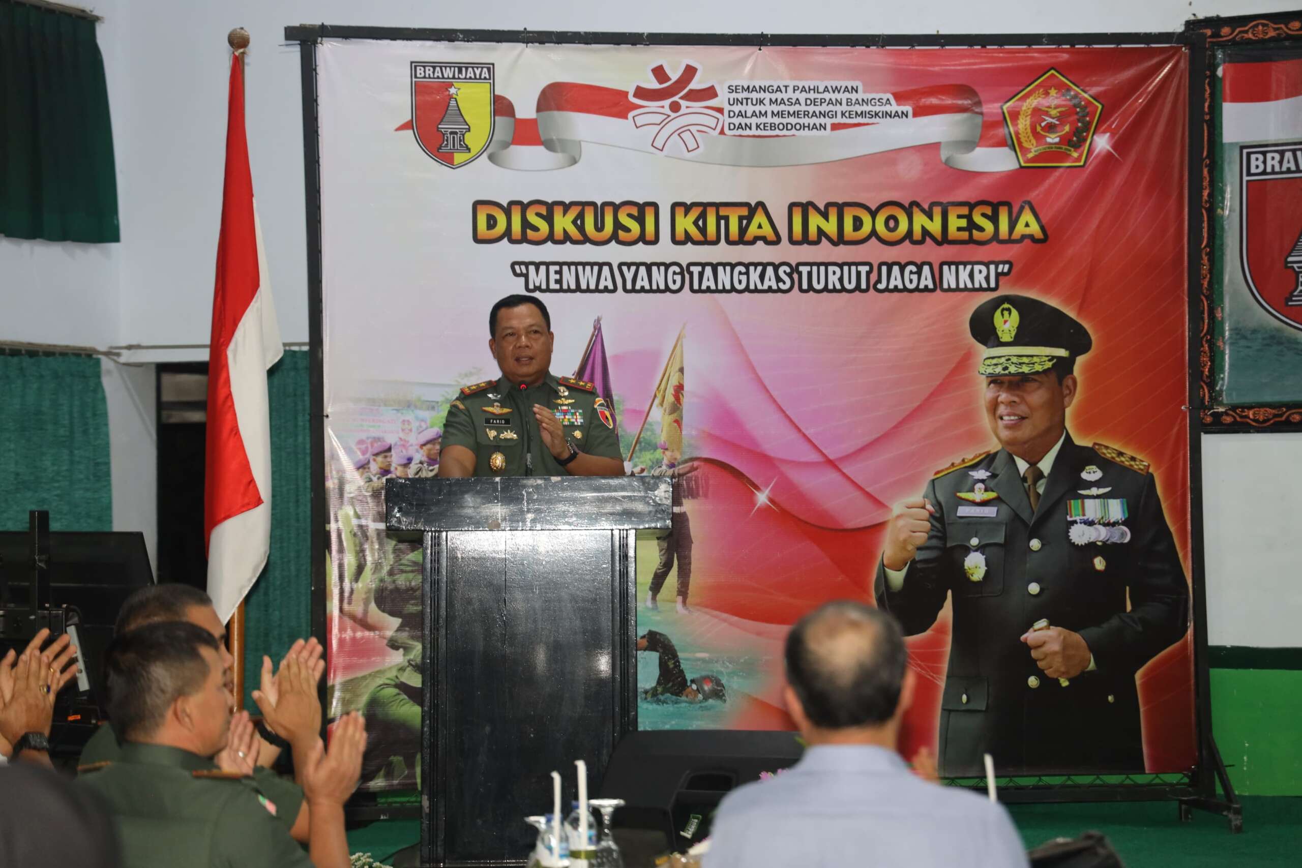 “Kita kan tidak pernah menyangka akan terjadi misal perang Ukraina dengan Rusia. Atau yang terbaru Israel dengan Palestina. Semua persenjataan canggih digunakan. Tetapi pertempuran terakhir tetaplah harus dilakukan dengan pertempuran darat. Utamanya di negara kita, perang gerilya merupakan pilihan utama. Namun perang gerilya kita saat ini berbeda dengan perang gerilya di masa kemerdekaan dulu, dimana tentara dan rakyat bahu membahu bertempur bersama. Gerilya dalam doktrin kita saat ini diartikan setiap orang harus bisa berperan serta membantu apabila terjadi perang sesuai dengan bidangnya masing-masing. Pada poin inilah Menwa dapat mengambil peran sebagai komponen pendukung untuk membantu TNI sesuai dengan keahlian mereka masing-masing. Yang jago IT, ahli logistik dan lain sebagainya, bisa memerankan dirinya untuk membantu perlawanan tentara menghadapi agresor,” papar jenderal bintang dua asal Madura itu.