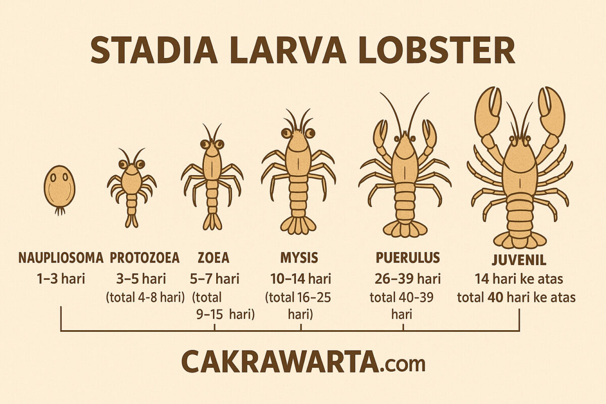 Menurut Gus Lilur, larva lobster dikenal memiliki tahapan perkembangan yang panjang dan menuntut kondisi lingkungan yang sangat spesifik. Mulai dari stadia naupliosoma yang hanya berlangsung 1-3 hari, hingga mencapai tahap juvenil yang membutuhkan waktu lebih dari 40 hari.