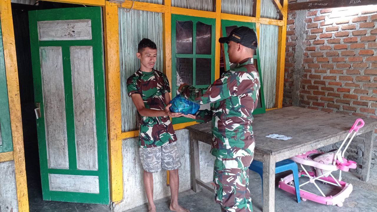 Personel Pos Manusasi Satgas Yonkav 6/Naga Karimata Pos Manusasi saat membagikan Sargal pada warga masyarakat di Desa Munasasi, Kecamatan Miomaffo Barat, Kabupaten Timor Tengah Utara, Provinsi Nusa Tenggara Timur, Sabtu (13/4/2024). (foto: yonkav 6/NK)