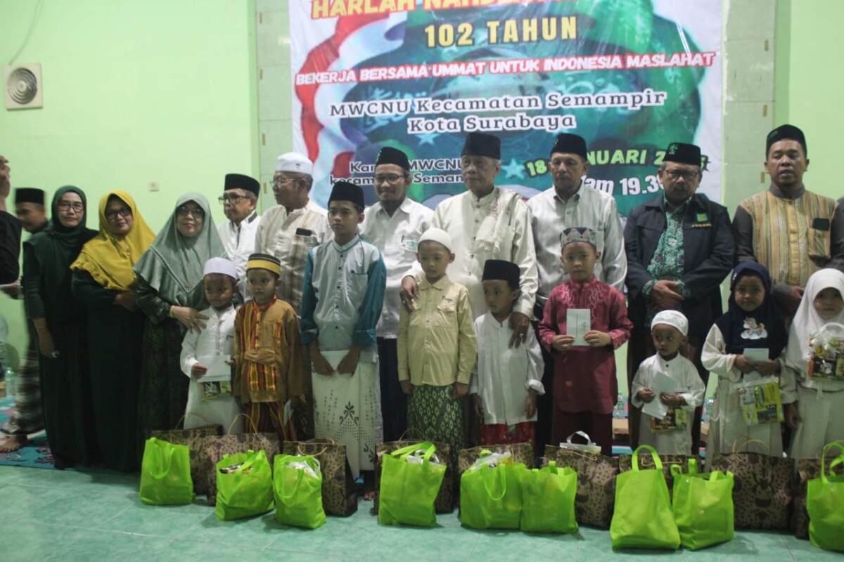 Semua pengurus NU dari pusat hingga anak ranting, badan otonom (banom) maupun lembaga pun ikut merayakan dan menyemarakkan Harlah kali ini, tak terkecuali Majelis Wakil Cabang (MWC) NU Kecamatan Semampir, Surabaya. Larut dalam tema besar yang diusung yaitu “Bekerja Bersama Ummat Untuk Indonesia Maslahat”, MWC NU Semampir mengadakan kontemplasi dan doa bersama serta santunan kepada anak yatim pada Sabtu (18/1/2025) malam di Sekretariat MWC NU Semampir di Jalan Bulak Rukem.