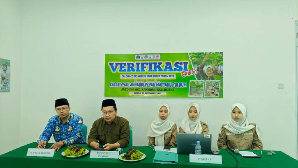 BLITAR, CAKRAWARTA.com – Pondok Pesantren Maftahul Uluum Jatinom, salah satu pesantren tertua di Blitar yang berdiri sejak 1868, menorehkan capaian baru. Pada Senin (17/11/2025), pesantren ini resmi menuntaskan proses verifikasi daring sebagai kandidat penerima Penghargaan Eco Pesantren Jawa Timur, sebuah langkah penting menuju pengakuan atas komitmen mereka dalam pengelolaan lingkungan.