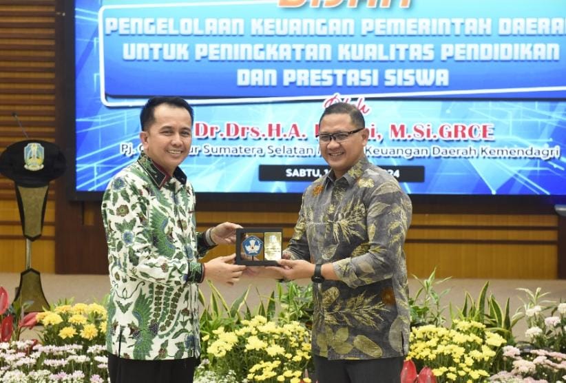 Surabaya, – Penjabat (Pj) Gubernur Sumatera Selatan sekaligus Direktur Jenderal Bina Keuangan Daerah Kemendagri Agus Fatoni memberikan pengarahan dan pembekalan dengan tema Bijak Mengelola Keuangan Pemerintah Daerah Untuk Peningkatan Kualitas Pendidikan dan Prestasi Siswa di Ruang Sabha Nugraha, Dinas Pendidikan Provinsi Jawa Timur, Sabtu (16/3/2024).