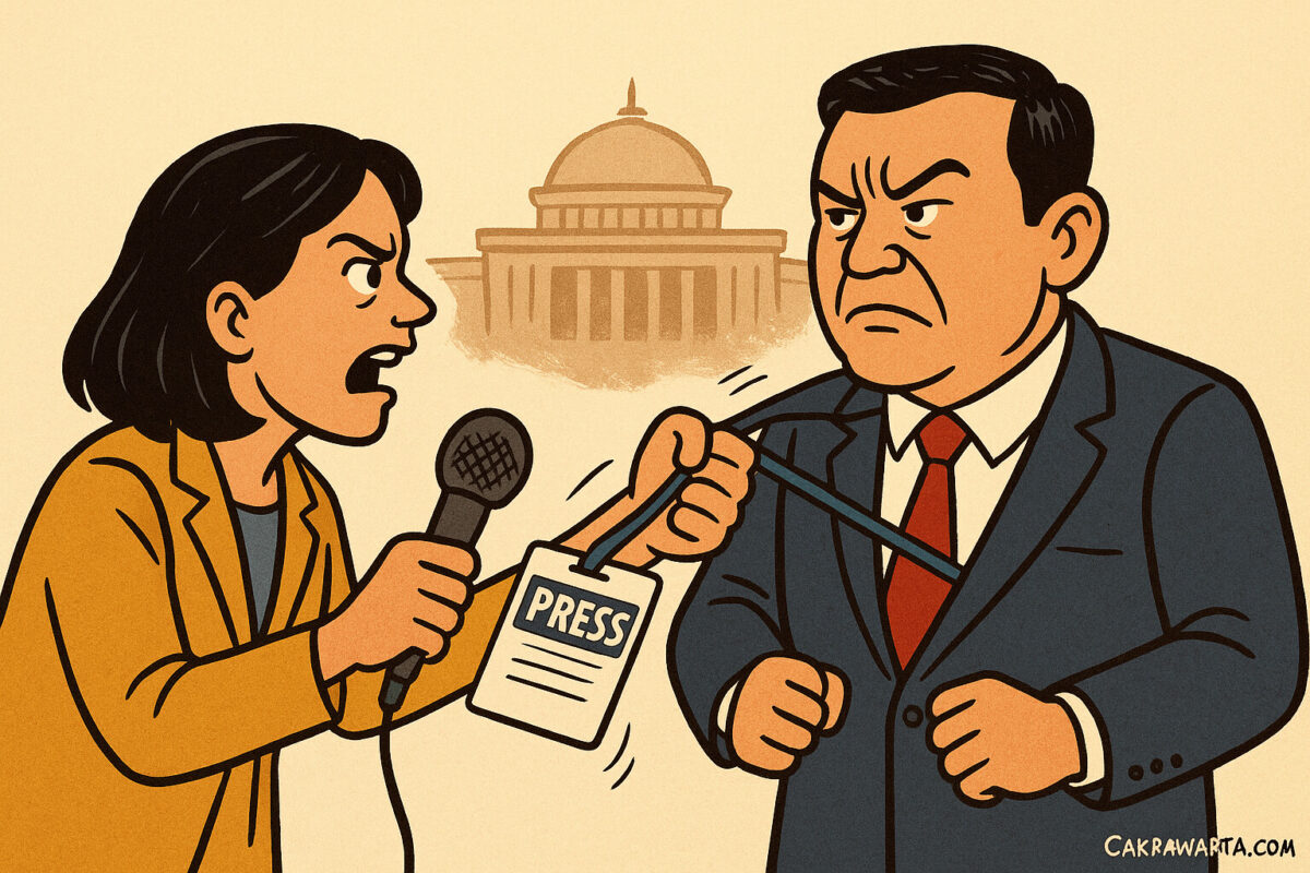 JAKARTA, CAKRAWARTA.com – Ikatan Jurnalis Televisi Indonesia (IJTI) melayangkan protes keras atas pencabutan kartu identitas liputan Istana milik jurnalis CNN Indonesia, Diana Valencia, setelah ia mengajukan pertanyaan kritis kepada Presiden Prabowo Subianto terkait Program Makanan Bergizi Gratis (MBG) di Lanud Halim Perdanakusuma, Jakarta, Sabtu (27/9/2025).
