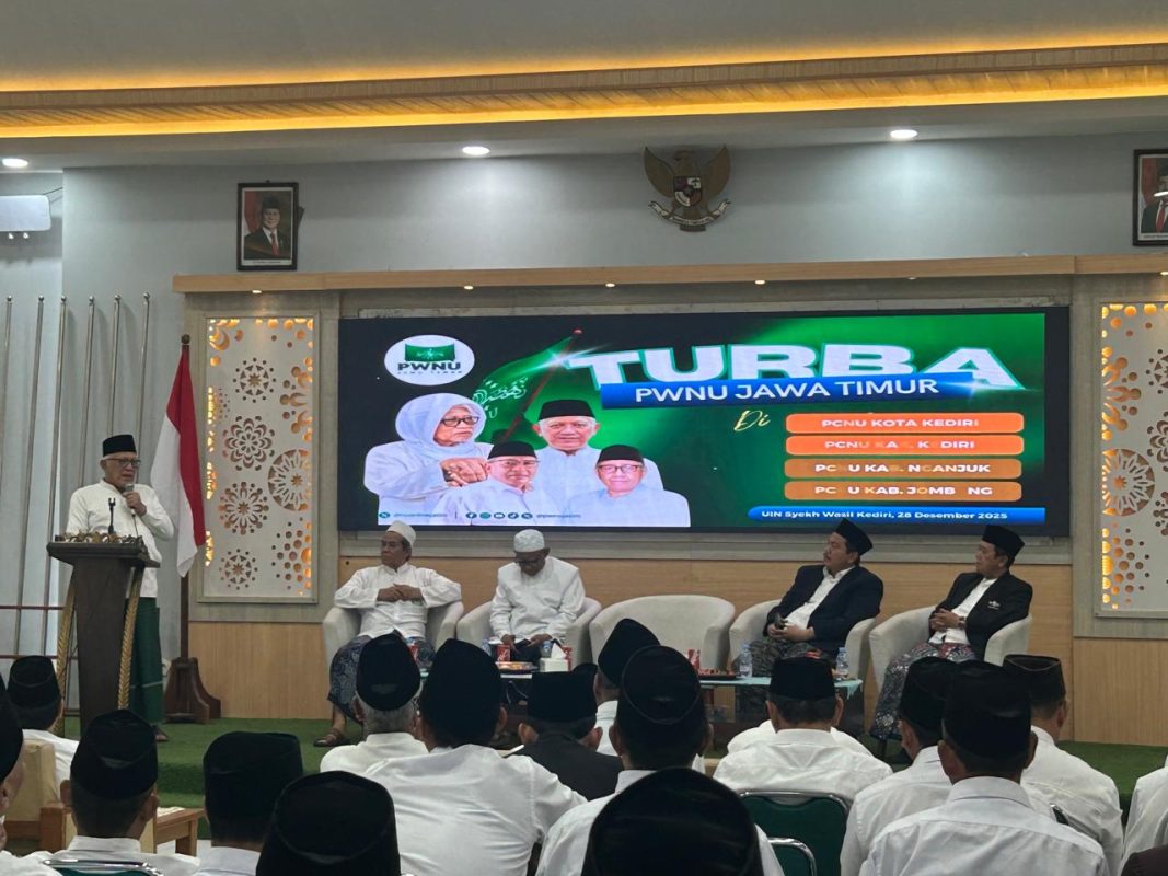 KEDIRI, CAKRAWARTA.com – Pengurus Wilayah Nahdlatul Ulama (PWNU) Jawa Timur mendorong penguatan sinergi antar-pengurus cabang di wilayah Kediri Raya guna meningkatkan kualitas pelayanan kepada umat. Dorongan itu disampaikan dalam kegiatan Turun Bawah (Turba) PWNU Jatim yang digelar di Gedung UIN Syekh Wasil, Kota Kediri, Minggu (28/12/2025).