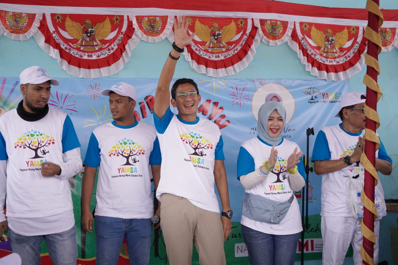 “Saya ingin di 17 Agustus ini anak-anak dari keluarga prasejahtera dapat turut merasakan kebahagiaan di hari kemerdekan Indonesia. Anak-anak berhak menikmati masa kecilnya dengan bermain dan atas kasih sayang dari orang tua maupun lingkungannya,” Sandiaga Uno menambahkan mendukung kegiatan ini yang kehadirannya disambut dengan lagu 17 Agustus 1945 oleh anak-anak nelayan Cilincing.