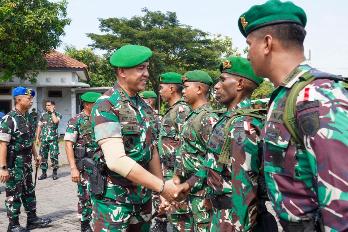 Pangdam V/Brawijaya Mayjen TNI Rudy Saladin melepas Satgas Yonif TP 837/KT ke Aceh Utara di Bandara Internasional Juanda, Sidoarjo, Senin (29/12/2025). (foto: Pendam V/Brw for Cakrawarta)