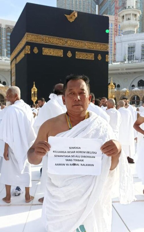 Meski tengah fokus dalam ibadah umrahnya, pria yang kesehariannya berdinas di Korem 081/DSJ itu juga tak lupa mendoakan keluarga besar dari satuan yang dicintainya.