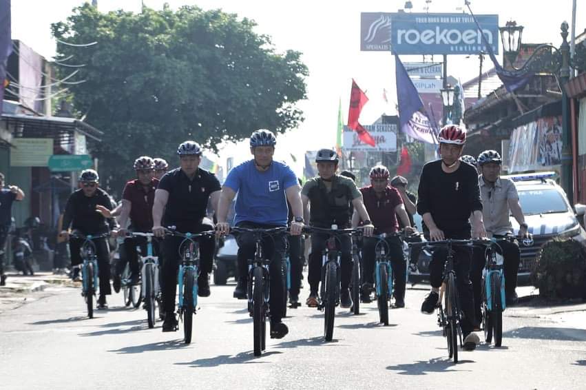 “Pagi hari ini saya berolahraga dengan bersepeda bersama Bapak Presiden Jokowi di Daerah Istimewa Yogyakarta, sambil menikmati suasana Jogja yang begitu menyenangkan,” ucap AHY.